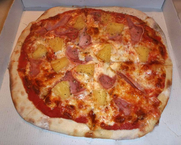 Caribbean Pizza with Mozzarella, Tomato, Bacon and Pineapple