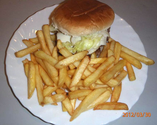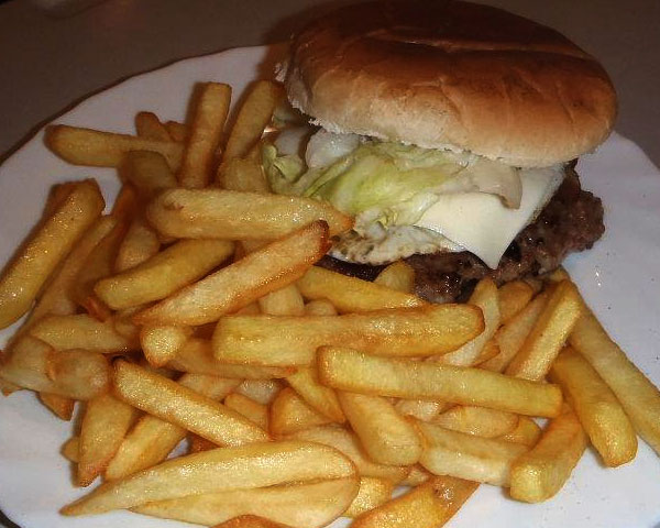 Hamburguesa con queso y patatas fritas